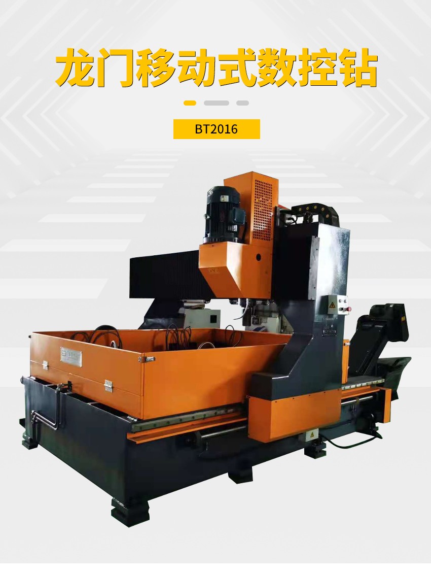 BT2016 型龍門移動式數控平面鉆床,用于在鋼板上鉆孔。加工的工件可以是鋼結構建筑、橋梁、鐵塔上的聯接板,也可以是大的法蘭盤、換熱器管板等。完全自動的加工。高效率、高精度。